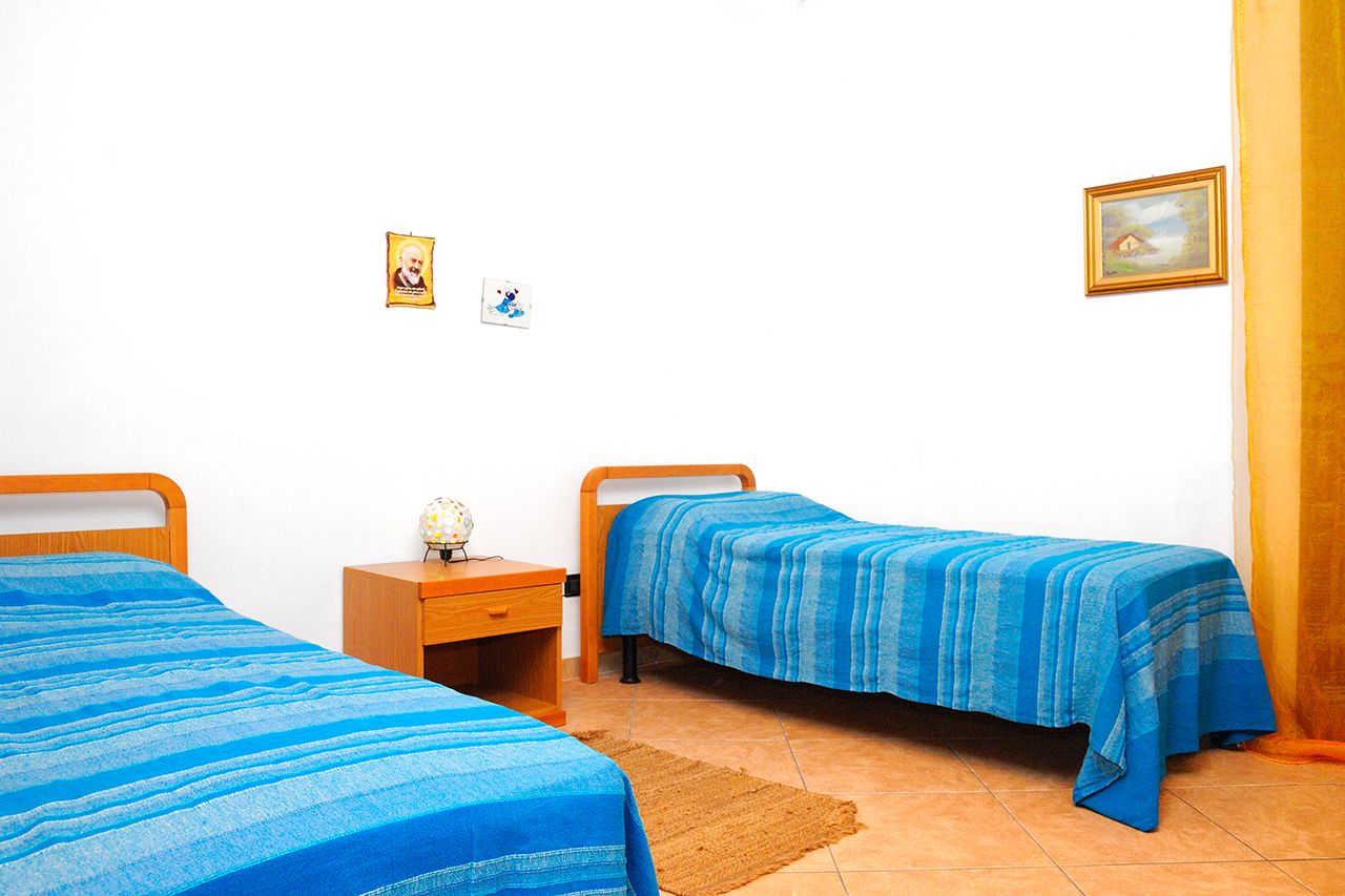 - Al primo e al secondo piano, si sviluppa l'altro appartamento così suddiviso: Primo piano, due camere matrimoniali un bagno ed una ampia sala con predisposizione per la cucina per eventuale trasformazione in più unità distinte, e un balcone che si estende sull'intera facciata della casa; al Secondo Piano, dal quale vi si accede tramite scala interna, si trova na cucina abitabile, una camera matrimoniale con bagno en-suite e ampio terrazzo con vista panoramica sul mare e sul porto turistico della Cala Marina di Castellammare del golfo.