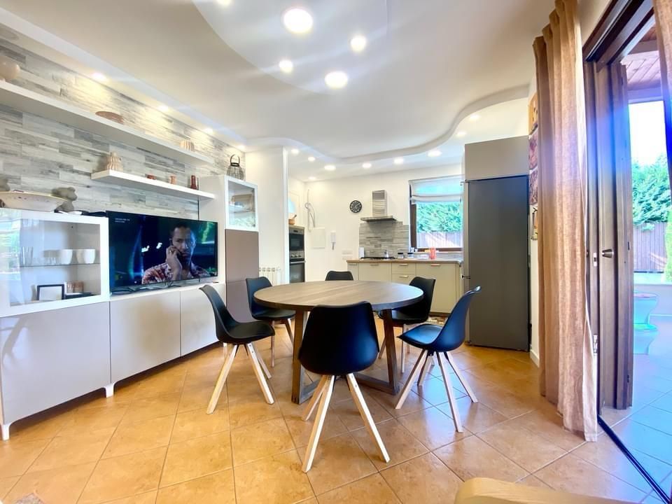 - Esterni: La villa è circondata da un lussureggiante giardino con ampie verande coperte, perfette per rilassarsi o per intrattenere gli ospiti. La zona BBQ coperta, completa di forno per pizze e pane, offre un ulteriore spazio ideale per le tue serate all'aperto.